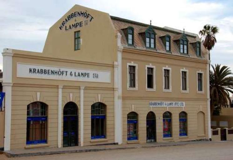 Keywords: Krabbenhöft - oldest coloured business.jpg en Picture of the Krabbenhoeft Building- now a bed and breakfast in Lüderitz Namibia own Miltonlouw date Cc-zero Buildings in Namibia Economy of Namibia Bed and breakfast inns