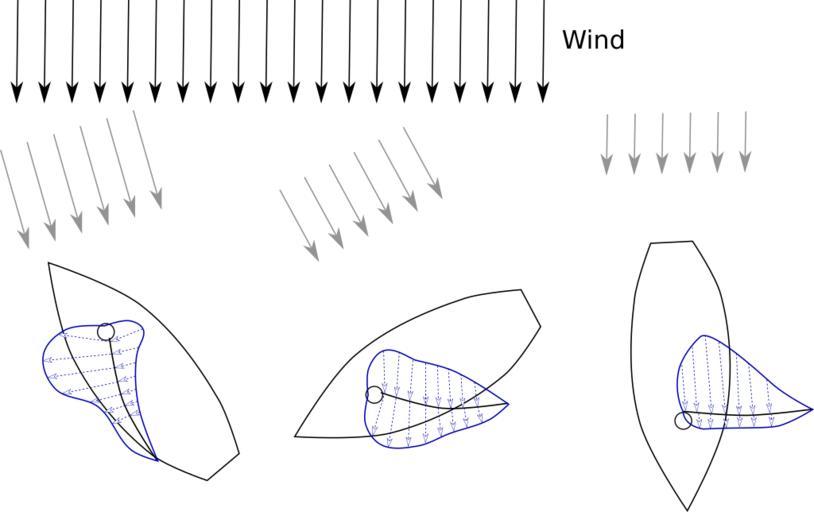 Keywords: Kraftverteilung am Segel.svg de Verteilung der Windkraft am Segel à berdruck in Luv Unterdruck in Lee; jeweils für verschiedene Kurse zum Wind own PaterMcFly 2015-01-03 Theory of sailing Cc-zero