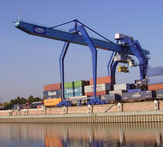 Keywords: Kran Muehhlauhafen 02.jpg en Port of Mannheim Germany Own Immanuel Giel 2008-09 Mühlauhafen Port cranes in Mannheim