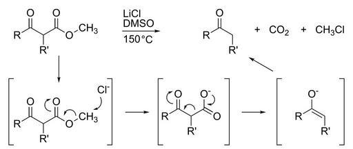 Keywords: Krapcho reaction.svg Diagram showing mechanism of the Krapcho reaction Own 17 42 7 September 2011 UTC Ed Edgar181 Krapcho reaction Reaction mechanisms