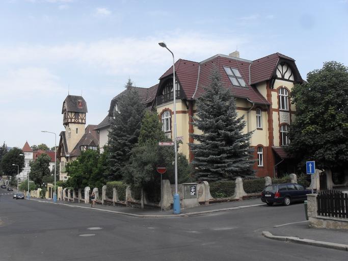 Keywords: Krásy Šanova v srpnu 2013 12.JPG cs Starý Šanov obsahuje válkou nedotčenou zástavbu starých domů a malý podíl novostaveb Jedná se o nejkrásnější čtvrť Teplic own PodLampou 2013-08 Cc-zero Šanov Teplice Villas in Teplice