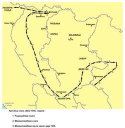 | Keywords: Kretanje snaga jvuo 1945.png en Movement of JVuO troops Đurišić and Mihailović column in spring 1945 sr Kretanje snaga JVuO Đurišićeve i Mihailovićeve kolone u proleće 1945 own PANONIAN 2013 Cc-zero References Made according to this source http //www znaci net/00001/40_83 htm http //www znaci net/images/20519 jpg Maps of Yugoslavia during World War II Maps of the history of Bosnia and Herzegovina in modern times Maps of the history of Republika Srpska Maps of Serbia during World War II Maps in Serbian Chetniks during World War II |