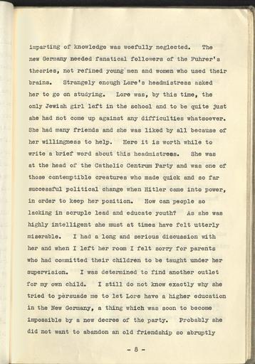 Keywords: text document monochrome Description: "The Years Which the Locust Hath Eaten" is a bound typescript, with a brief handwritten addendum. The narrative covers approximately the period from 1936 to 1940, and describes the events and thoughts leading to the Kretzmer family's decision to leave Nazi Germany, their stay in England, and their arrival in the United States. The volume includes two postcards and 13 photographs, most of buildings and landscapes in places that the Kretzmers visited or in which they stayed. Repository: Schlesinger Library on the History of Women in America. Collection: Lilli Cohen Kretzmer Papers Call Number: MC 379 Catalog Record: id.lib.harvard.edu/aleph/001366809/catalog Questions? Ask a Schlesinger Librarian Description: "The Years Which the Locust Hath Eaten" is a bound typescript, with a brief handwritten addendum. The narrative covers approximately the period from 1936 to 1940, and describes the events and thoughts leading to the Kretzmer family's decision to leave Nazi Germany, their stay in England, and their arrival in the United States. The volume includes two postcards and 13 photographs, most of buildings and landscapes in places that the Kretzmers visited or in which they stayed. Repository: Schlesinger Library on the History of Women in America. Collection: Lilli Cohen Kretzmer Papers Call Number: MC 379 Catalog Record: id.lib.harvard.edu/aleph/001366809/catalog Questions? Ask a Schlesinger Librarian |
