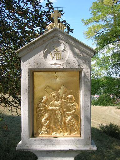Keywords: Kreuzweg Frauenberg (Eichstätt) -08.jpg Frauenbergkapelle 14 Bildstöcke ehemals mit Gusseisenreliefs 1856; in ab 1875 angepflanzter Kastanienallee own WaldiWuff 2012-08-15 Kreuzweg Frauenberg Eichstätt 08 Station 8 Jesus meets the daughters of Jerusalem Germany Bavaria Eichstätt Cc-zero |