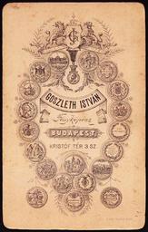 | Keywords: Kristóf tér 3., Goszleth István fényképész. Fortepan 81137.jpg Check categories 2016 August 28 hu Kristóf tér 3 Goszleth István fényképész Location Hungary Budapest V Tags verso photographer studio Budapest Title Kristóf tér 3 Goszleth István fényképész http //www fortepan hu/_photo/download/fortepan_81137 jpg 1900 Fortepan 81137 http //www fortepan hu/_photo/download/fortepan_81137 jpg http //www fortepan hu/ lang en img 81137 Unknown The release at fortepan hu is CC-BY-SA-3 0 As the photographer is unknown or pseudonymous and the photograph is Age 1900 01 01 years old it is considered public domain both in the country of publication Hungary and the USA where Wikimedia Commons is hosted See Fortepan HU for more information on related uploads PD-anon-70-EU PD-1923 PD-1923 DEFAULTSORT Fortepan 081137 1900 photographs Images uploaded by Fæ |