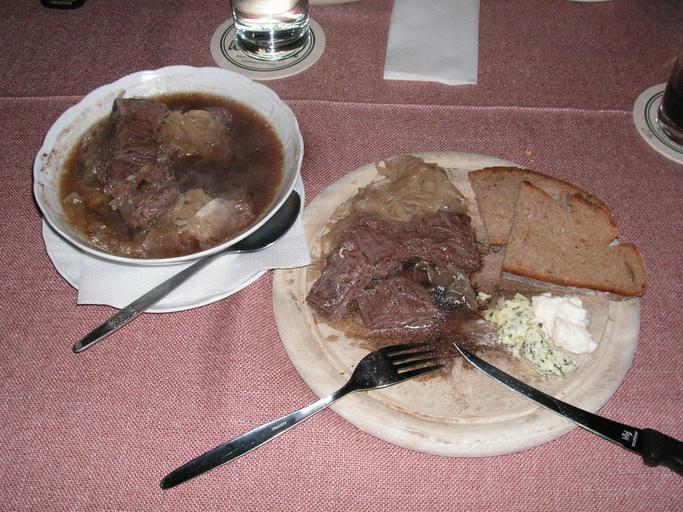 Keywords: Kronfleisch 3.jpg Kronfleisch skirt steak a traditional bavarian dish Typically served in bowl filled with hot broth and onion rings Own 2007-08-07 Alcibiades Kronfleisch