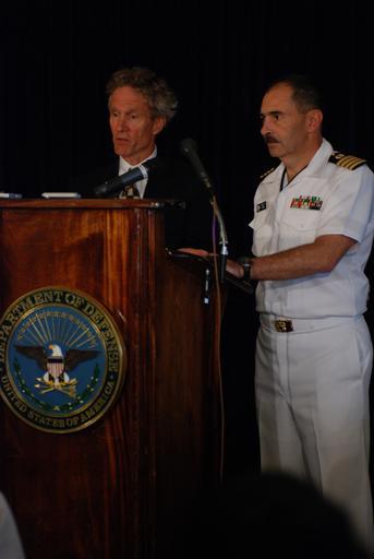 Keywords: KSM Counsel Press Conference DVIDS103772.jpg en David Nevin a civilian adviser for alleged Sept 11 mastermind Khalid Sheikh Mohammed and Navy Capt Prescott Prince standby defense counsel for Mohammed address media in McCalla Hangar following a hearing here July 10 2008 Mohammed who has elected to represent himself during the proceedings and three other alleged co-conspirators received individual hearings to make counsel elections following accusations of intimidation during a June 5 2008 arraignment JTF Guantanamo conducts safe and humane care and custody of detained enemy combatants The JTF conducts interrogation operations to collect strategic intelligence in support of the Global War on Terror and supports law enforcement and war crimes investigations JTF Guantanamo is committed to the safety and security of American service members and civilians working inside its detention facilities 2008-07-10 Petty Officer 2nd Class Nathaniel Moger https //www dvidshub net/image/103772 080710-N-+++++-018 2008-07-17 15 58 GUANTANAMO BAY CU PD-USGov-Military-Navy Guantanamo Bay Images from DoD uploaded by Fæ
