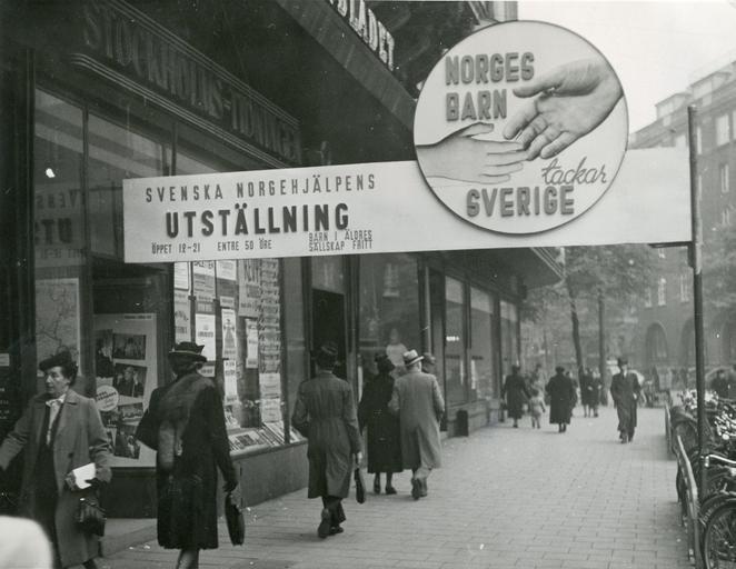 Keywords: vårslipp vårslipp 2012 vårslipp2012 kulturmønstringer norsk uke norskuke andre verdenskrig andreverdenskrig 2. verdenskrig 2verdenskrig nordmenn i sverige under krigen nordmennisverigeunderkrigen blackandwhite black and white I forbindelse med den norske uken i Stockholm i tiden 9-15. oktober 1944 holdtes en utstilling ”Norges barn takker Sverige” i Stockholms-Tidningens lokaler ved Stureplan. Den ble åpnet 11. oktober. Bildet viser inngangen til utstillingslokalet, med utstillingens motto. RA/PA-1209/Uc/72/1/S 5378 I forbindelse med den norske uken i Stockholm i tiden 9-15. oktober 1944 holdtes en utstilling ”Norges barn takker Sverige” i Stockholms-Tidningens lokaler ved Stureplan. Den ble åpnet 11. oktober. Bildet viser inngangen til utstillingslokalet, med utstillingens motto. RA/PA-1209/Uc/72/1/S 5378 |