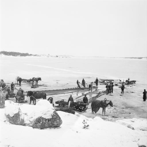 Keywords: blackandwhite monochrome outdoor snow black and white Hevosia ja kalastajia vetämässä nuottaa avannosta. Alkuperäinen kuvateksti: "Mutta jäällä ovat edistyneet asiat. Hevoset ovat kiertäneet nuotan pitkälle ja miehet ovat tarttuneet myös reunoihin kiinni kiskoakseen nuotan mahdollisimman pian jään päälle. Hitaasti, kovin hitaasti se sieltä tulee." (Kuluttajain Lehti 7/1954, s. 6) photographer / kuvaaja: Kalle Kultala 1954 Rymättylä, Varsinais-Suomi, Finland / Suomi Finnish Museum of Photography / Suomen valokuvataiteen museo Hevosia ja kalastajia vetämässä nuottaa avannosta. Alkuperäinen kuvateksti: "Mutta jäällä ovat edistyneet asiat. Hevoset ovat kiertäneet nuotan pitkälle ja miehet ovat tarttuneet myös reunoihin kiinni kiskoakseen nuotan mahdollisimman pian jään päälle. Hitaasti, kovin hitaasti se sieltä tulee." (Kuluttajain Lehti 7/1954, s. 6) photographer / kuvaaja: Kalle Kultala 1954 Rymättylä, Varsinais-Suomi, Finland / Suomi Finnish Museum of Photography / Suomen valokuvataiteen museo |
