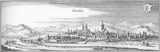 Keywords: Kupferstich hersfeld 1655.jpg Hersfeld im Jahr 1655 Im Zentrum der Stadt die Stadtkirche links davon die Klosterkirche mit dem einen Westturm und den Vierungsturm Links das Peterstor und der davor liegenden Vorstadt mit den Steinbrücken über die Fulda und die Haune Neben der Fuldabrücke außerhalb der Stadt das Sondersiechenhaus Ebenfalls links auf dem Berg die Propstei Johannesberg und darunter schemenhaft am Horizont im Fuldatal angedeutet das Schloss Eichhof Rechts im Bild sieht man das Klaustor darüber auf dem Frauenberg die Ruinen der dortigen Kirch- und Klosterbauten und darunter am Ufer der Fulda die Ruine der Klauskirche arranged by 2micha 1655 creator Matthäus Merian PD-old-100 picture is part of Image De Merian Hassiae 126 jpg <gallery> Image Hersfeld-1646-Merian jpg Image De Merian Hassiae 126 jpg Image Stadtkirche hersfeld 1655 jpg Image Stiftskirche hersfeld 1655 jpg Image Hersfeldt Merian jpg </gallery> Merian Hassiae Hersfeld Bad Hersfeld in art Engravings of towns in Germany 1655 Bridges over the Fulda Stone arch road bridges in Hesse |