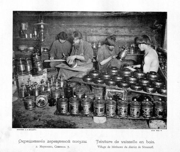 Keywords: Kustari 085 Okrashivanie.jpg en Handicraft Industry and Trades of Nizhegorodskaja gubernija Merinovo XIX c ru Куста ные п омыслы и емёсла ижего одской губе нии Ок ашивание де евянной посуды Де евня е иново Семёновского уезда 1896 год Скани ован из книги ижего одская губе ния по исследованиям губе нского земства Выпуск II Куста ные п омыслы ижего одской губе нии / сост А Плотников СПб 1896 еизвестный фотог аф конца XIX века 1896 PD-old Handicraft Industry of Nizhny Novgorod province