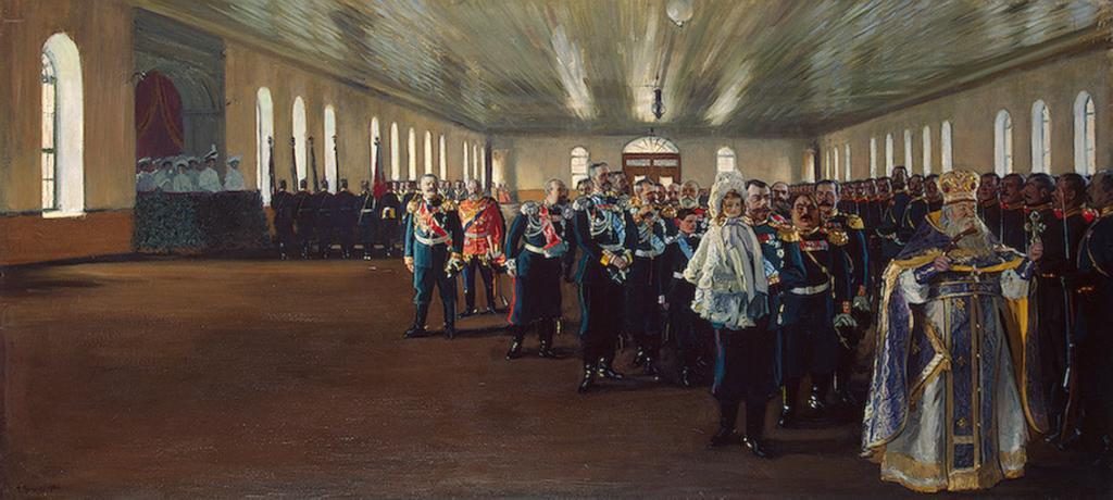 | Keywords: Kustod Fin Regiment.jpg Church Parade of the Finlandsky Guard Regiment December 12 1905 Julian Calendar The painting is completed in 1906 Це ковный па ад лейб-гва дии Финляндского полка 12 декаб я 1905 года http //smim ru/foto/displayimage php album lastup cat -10 pos 18 1906 Creator Boris Kustodiev PD-old-auto 1927 Creator Boris Kustodiev Paintings by Boris Kustodiev Saint Spyridon churches in Russia Imperial Russian Army | ||||