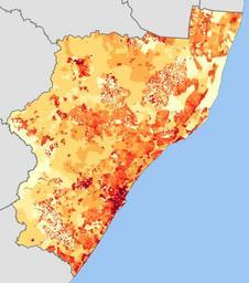 Keywords: KwaZulu-Natal 2011 population density map.svg ffffcc <1 inhabitant/km² ffeda0 1 “3 inhabitants/km² fed976 3 “10 inhabitants/km² feb24c 10 “30 inhabitants/km² fd8d3c 30 “100 inhabitants/km² fc4e2a 100 “300 inhabitants/km² e31a1c 300 “1000 inhabitants/km² bc0026 1000 “3000 inhabitants/km² 800026 >3000 inhabitants/km² Projection is Albers Equal-Area Conic with standard parallels at 25 5° S and 31 5° S and origin at 28 5° S 25 5° E Statistics South Africa's Census 2011 is the source of the basic population data The map results from my own processing of the data Htonl 2013-10-22 http //beta2 statssa gov za/ page_id 425 The following license applies to the population data on which the map is based the user acknowledges Stats SA as the source of the basic data wherever they process apply utilise publish or distribute the data and also that they specify that the relevant application and analysis where applicable result from their own processing of the data The following tag applies to the map itself Demographic maps of South Africa Maps of KwaZulu-Natal |