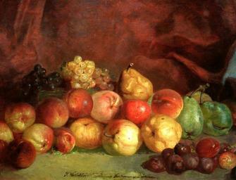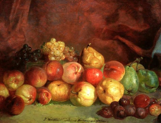 Keywords: Kwiatkowski Fruits.jpg Artwork Creator Teofil Kwiatkowski 1888 oil canvas cm 48 64 Institution National Museum Warsaw Not on view accession number MP 321 object history credit line T Kwiatkowski wdzięczny Doktorowi / 1888 signature/date http //cyfrowe mnw art pl/dmuseion/docmetadata id 4721 cyfrowe mnw art pl See below PD-old-100 DEFAULTSORT 1888; Fruits Teofil Kwiatkowski 1888 paintings 1880s still-life paintings Kwiatkowski Paintings by Teofil Kwiatkowski in the National Museum in Warsaw 19th-century still life paintings of fruits Kwiatkowski |