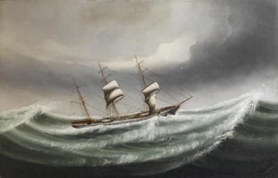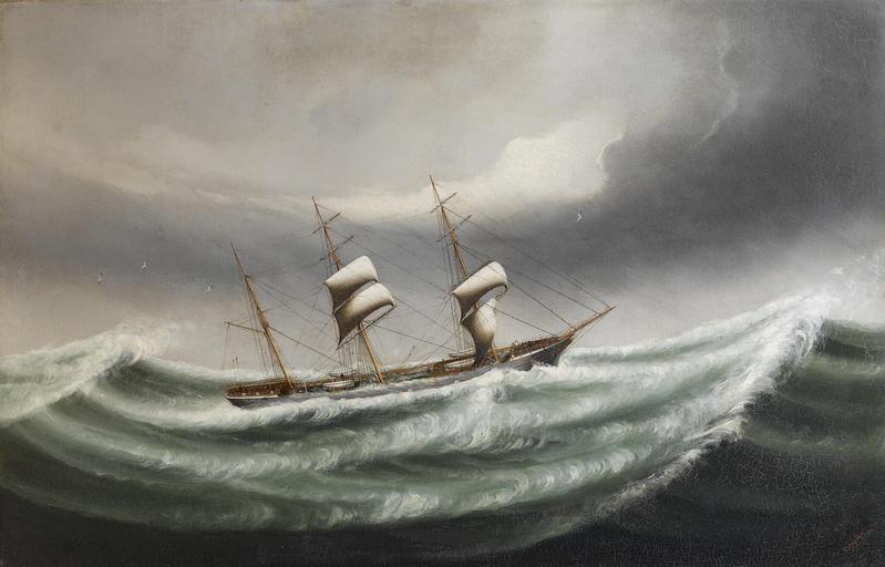 Keywords: Kwong Sang - The barque Hawthornbank in stormy waters (1894).jpg 1894 oil canvas cm 78 8 122 5 object history credit line signed 'Kwong Sang' inscribed 'Calcutta' and dated '1894' lower right The Hawthornbank was a three-masted barque built by Russell Co Port Glasgow in 1889 and owned by Andrew Weir Co Glasgow It was sold to J A Henschein Co Norway in 1910 and then to Motorselsk Marienborg Denmark in 1915 She was torpedoed and sunk off the north coast of Scotland on 25 April 1917 accession number http //www bonhams com/auctions/14681/lot/50/ Bonhams London 12 Dec 2007 lot 50 PD-old-100 Kwong Sang Hawthornbank ship 1889 19th-century sailing ships in paintings 1894 oil on canvas paintings |
