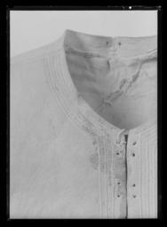 | Keywords: Kyller använt av Gustav II Adolf vid Dirschau den 6 augusti 1627 - Livrustkammaren - 44060.tif Kyller använt av Gustav II Adolf vid Dirschau den 6 augusti 1627 w Buff coat used by Gustavus Adolphus of Sweden at the Kyller av älghud med ärmar av siden numera endast fragment kvar Kyllret är kraglöst och avskuren i midjan med långa skört 4 stycken <br/><br/>Längd mitt fram liv 36 5 cm skört 41 5 cm <br/>Bröstvidd 105 cm <br/>Längd mitt bak liv 41 5 cm skört 40 5 cm <br/>Ryggbredd 40 cm <br/>Midja 106 cm <br/>Vidd skörtens nederkant 281 cm <br/>Längd i sida liv 24 cm skört 43 3 cm <br/>Axelbredd 17 6 cm <br/>Ärmlängd 69 cm största ärmvidd 34 cm ärmvidd nedtill 28 cm <br/>Ärmsprundet är 18 cm Åtta knapphål vänster ärm har 4 silvertrådsklädda knappar och höger ärm har 7 knappar kvar <br/>Ärmens innersöm har en 15 5 cm lång öppning med 8 öglor av silvertråd på var sida över var ögla sitter en sydd träns av sysilke <br/><br/>Sömmarna runt framkant hals på axlar och längs skörtens sidor är dekorationsstickade med tre parallella sömmar i vit lintråd Snörning mitt fram med nio grupper med två hål i varje grupp på var sida Snörningen har blodfläckar Skörtets söm mitt bak på höger bakstycke har gått upp ca 1 cm Ärmarna har rester av sitt yttertyg ett ljust brun atlas samt ett foder av ljust brun taft Kyllret har axelkarmar och endast mycket små rester av atlasen finns kvar däremot återstår det mörkt bruna kanvasen som utgjort mellanlägg i tre lager tyg Kanvasen är belagd med en yta för styvnadens skull Livet i kyllret är fodrat med vitt linne förmodligen som mellanfoder w Buff coat of elk hide with sleeves made of silk of which now only fragments remain The coat is collarless and seamed at the waist with long skirts in four pieces Detail of neckline showing eyelets Center front length body 36 5 cm 41 5 cm skirts Chest 105 cm Center back length 41 5 cm body skirts 40 5 cm Back width 40 cm Waist 106 cm Width skirt hem 281 cm Length at side body 24 cm 43 3 cm skirts Shoulder Width 17 6 cm Sleeve length 69 cm Maximum sleeve width 34 cm Sleeve width at bottom 28 cm Sleeve opening 18 cm Sleeves have eight buttonholes; the left sleeve has four silver-wrapped thread covered buttons and the right sleeve has seven buttons left The coat's inseam has a 15 5 cm long opening with 8 loops of silver wire On each side of the loop is a stitched tack of sewing silk The seams around the front edge of the neck the shoulders and along the sides of skirt are decorated with three parallel rows of stitching in white linen thread The lacing at the front has nine groups of two holes in each group on each side The lacing has blood stains Skirt seam at center back on the right rear panel has gone up about 1 cm The sleeves have the remains of their outer shell a light brown silk atlas satin and a lining of light brown taffeta The coat has shoulder wings with only small remnants of the atlas remaining over the dark brown the canvas that formed inserts in the three-layer fabric The canvas is coated with a surface for stiffenings' sake The body of the coat is lined with white linen presumably as interlining original caption Slaget vid Dirschau Battle of Dirschau 1627 silk d1 - dräkt - yttermaterial material siden size mm 365 mitt fram LRK Gustav II Adolf av Sverige Gustavus Adolphus of Sweden Basutställning Gustav II Adolf Minnesutställning 1932 1932 place of origin original filename LN_B09695_012575 67807 inventory number LRK 31194 44060 CC0 Kyller använt av Gustav II Adolf vid Dirschau den 6 augusti 1627 - Livrustkammaren - 44060-negative tif <gallery caption Different images of same object > File Kyller Dirschau - Livrustkammaren - 60031 tif File Kyller använt av Gustav II Adolf vid Dirschau den 6 augusti 1627 - Livrustkammaren - 61181 tif File Detaljbild på axelstycke Gustav II Adolfs älghudsskyller från Dirschau år 1627 - Livrustkammaren - 65278 tif File Detaljbild på ärm Gustav II Adolfs älghudsskyller från Dirschau år 1627 - Livrustkammaren - 22477 tif File Kyller Dirschau - Livrustkammaren - 42910 tif File Gustav II Adolfs dräkt från slaget vid Dirschau 1627 - Livrustkammaren - 56717 tif File Kyller använt av Gustav II Adolf vid Dirschau den 6 augusti 1627 - Livrustkammaren - 35501 tif File Detaljbild ena armen på Gustav II Adolfs älghudsskyller från Dirschau år 1627 - Livrustkammaren - 73840 tif File Detaljbild på tyg Gustav II Adolfs älghudskyller från Dirschau år 1627 - Livrustkammaren - 13914 tif File Kyller Dirschau - Livrustkammaren - 51470 tif File Kyller använt av Gustav II Adolf vid Dirschau den 6 augusti 1627 - Livrustkammaren - 52620 tif </gallery> Media contributed by LSH unmatched event Media contributed by LSH unmatched material Buff coats Media contributed by LSH unmatched objKeyword Clothing in Livrustkammaren Media contributed by LSH 2013-10 |