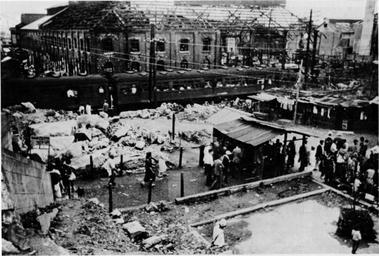 Keywords: Kyobashi Station Osaka in 1946.jpg ja 昭和20年 1945年 8 14日の京橋駅空襲から10ヶ 経った京橋駅 この写 は交 科学博物館屋外展示場でも展示されている 1946-06 日 国 鉄道百年写 史 P303 Author PD-Japan-oldphoto Stations in Osaka prefecture photographed before 1956 1946 in Japan World War II destructions in Japan in 1945 Bombing of Kyōbashi Kyōbashi Station Osaka |