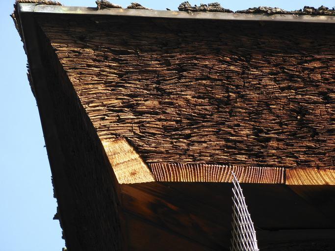 Keywords: Kyoto Toji Hiwadabuki C0990.jpg This detail of the roof of the Mieidō at Tō-ji a Buddhist temple in Kyoto Japan shows the hiwada-buki 桧皮葺 construction The material of the roof is the bark of a tree such as en Chamaecyparis obtusa Japanese cypress or en sugi I took this photo 2007-02-02 own assumed Fg2 Roof elements Roofs structural systems Roofs in Japan Daishi Hall Toji Bark roofs |