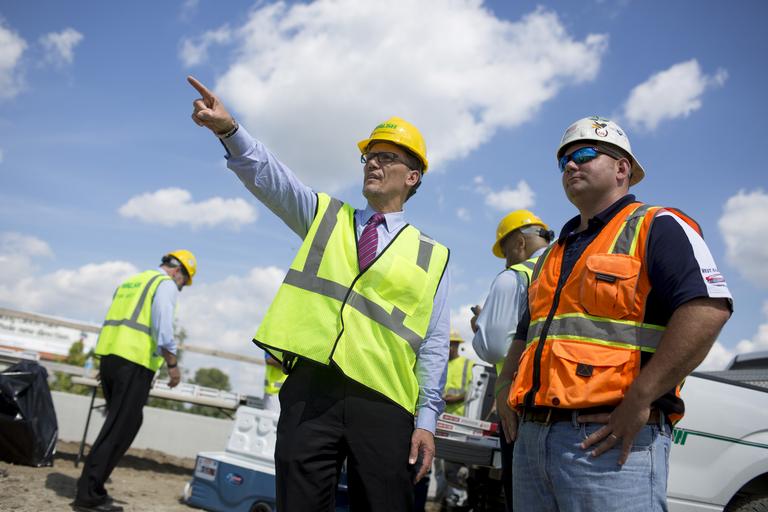 | Keywords: L-14-09-03-A-0664 (15117072846).jpg U S Secretary of Labor Thomas E Perez asks a question about the project at an active Walsh Construction Company infrastructure project site in Indianapolis on Wednesday Sept 3 2014 The company is building a new bridge for an exit from the northbound lanes of Interstate 65 to the westbound lanes of Interstate 465 on Indianapolis' southeast side Official Department of Labor Photograph This official Department of Labor photograph is being made available only for publication by news organizations and/or for personal use printing by the subject s of the photograph The photograph may not be manipulated in any way and may not be used in commercial or political materials advertisements emails products and/or promotions that in any way suggest approval or endorsement of the Secretary or the Department of Labor Photo Credit Department of Labor https //www flickr com/photos/usdol/15117072846/ L-14-09-03-A-0664 2014-09-03 12 54 https //www flickr com/people/52862363 N07 US Department of Labor PD-USGov US Department of Labor https //flickr com/photos/52862363 N07/15117072846 2016-09-06 06 12 33 United States Government Work Uncategorized 2016 December 21 |