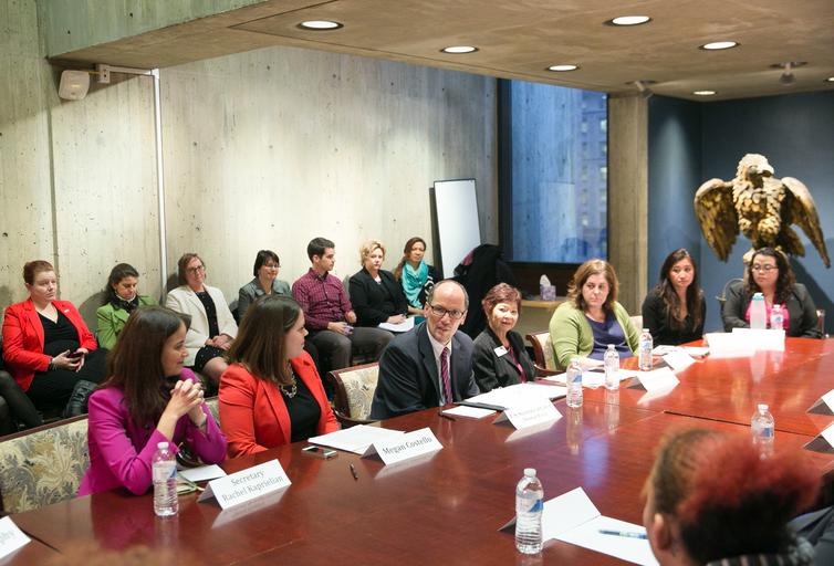 Keywords: L-14-11-17-A-0419 (15200961503).jpg November 17 2014 - Boston MA - City Hall US Secretary of Labor Thomas Perez spoke at a meeting to discuss issues facing women in the workplace From left Rachel Kaprielian MA Secretary of Labor Megan Costello Executive Director Mayor's Office of Women's Advancement at City of Boston Patricia Fae Ho President of the American Association of University Women AAUW Joyce Linehan Chief of Policy for Boston MA and Trinh Nguyen Chief of Boston Housing Authority Official Department of Labor Photograph This official Department of Labor photograph is being made available only for publication by news organizations and/or for personal use printing by the subject s of the photograph The photograph may not be manipulated in any way and may not be used in commercial or political materials advertisements emails products and/or promotions that in any way suggest approval or endorsement of the Secretary or the Department of Labor Photo Credit U S Department of Labor https //www flickr com/photos/usdol/15200961503/ L-14-11-17-A-0419 2014-11-17 15 58 https //www flickr com/people/52862363 N07 US Department of Labor PD-USGov US Department of Labor https //flickr com/photos/52862363 N07/15200961503 2016-09-06 05 52 23 United States Government Work Uncategorized 2016 December 21 |