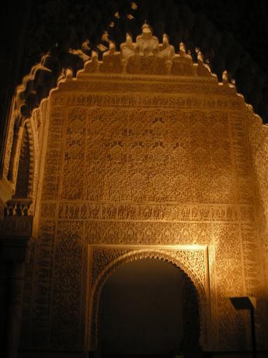Keywords: La Alhambra. Palacio Nazarí.view at nigth 1.JPG cambio de nombre a imagen subida anteriorente Trabajo propio D P 2007-09-25 own assumed Valdoria~commonswiki Doorway in Patio de los Leones Alhambra at night