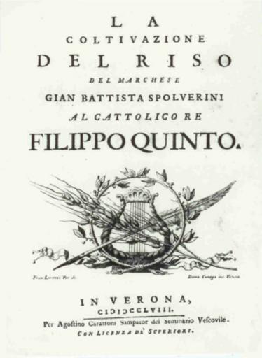 Keywords: La coltivazione del riso - Spolverini.jpg Giambattista Spolverini sul ciclo del riso Verona 1758 Italia Verona in 1758 - Italy 2013-06-09 09 35 28 http //www risocarenzio it/conoscere/storia html Azienda agricola Carenzio Giovanni Spolverini Custom license marker 2013 06 09 PD-old-100 Uploaded with UploadWizard Rice books Title pages Rice of Italy |