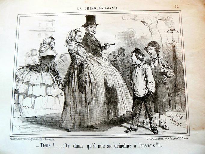 Keywords: La crinolomanie à l'envers.JPG Charles Vernier Un titi parisien s'exclame en voyant une femme enceinte « Tiens c'te dame qu'à mis sa crinoline à l'envers » unknown unknown Creator Charles Vernier PD-old-100 Charles Vernier Caricatures of crinolines |
