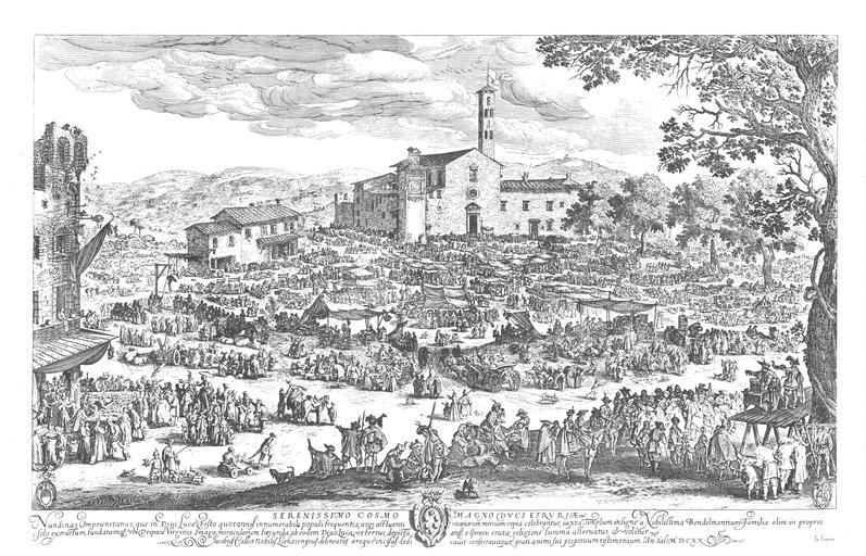 | Keywords: La Fiera dell'Impruneta 9920x6375.jpg LargeImage it Jacques Callot Nancy 1592 - 1635 La Fiera dell'Impruneta Acquaforte originale mm 436 x 678 Own creator Jacques Callot 1620 La Fiera dell'Impruneta_600x386 png Il francese Jacques Callot 1592-1635 è la personalità di maggior rilievo tra gli incisori stranieri che operano in Italia nel XVII secolo Originario di Nancy il Callot giunge a Roma nel 1609 e nel 1612 è a Firenze dove su incarico di Cosimo II diventa il creatore di tutti gli apparati teatrali allestiti durante il suo regno Sono proprio le scene teatrali unitamente ai personaggi in maschera i mendicanti e la vita campestre i soggetti prediletti dall'incisore francese che incisi con segno scattante ma anche delicato ed attento ai più minuti dettagli vivono immersi in un'atmosfera sospesa tra sogno e realtà Della grande produzione del Callot ricordiamo I Balli di Sfessania 23 stampe del 1615-17; i Capricci del 1616-19; la Fiera dell'Impruneta del 1620 autentico capolavoro della grafica con 1500 figure incise ; tra le opere di genere vedutista i Paesaggi italiani 1618 e le Vedute di Parigi databili tra il 1629 e 1630 PD-old-100 Jacques Callot Fiera dell'Impruneta Acquaforte |