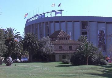 Keywords: La Masia (back).JPG en Back of La Masia the youth academy of FC Barcelona In the background the Camp Nou de Rückseite der La Masia der Jugendakademie des FC Barcelona Im Hintergrund das Camp Nou own Barçelonista 2011-03-19 Cc-zero Masia de Can Planes Exterior of Camp Nou |