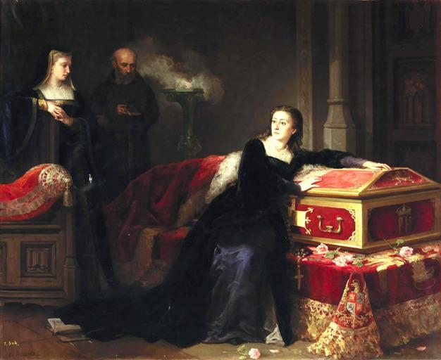 Keywords: La reina Doña Juana la Loca (Museo del Prado).jpg La obra representa a la reina Juana I de Castilla 1479-1555 apodada la Loca junto al cadáver de su esposo el rey Felipe el Hermoso ~ 1858 oil on canvas Size cm 145 118 Institution Museo del Prado Depositado en el Institution Ministry of Justice of Spain https //www museodelprado es/coleccion/obra-de-arte/la-reina-doa-juana-la-loca/cfa8f4d9-4c3d-4807-ae75-7da0cb7cc176 accession number P04743 https //content2 cdnprado net/imagenes/Documentos/imgsem/cf/cfa8/cfa8f4d9-4c3d-4807-ae75-7da0cb7cc176/4f72b19e-3d81-42dd-800f-a5de23f99dd7 jpg PD-old-100 Joanna of Castile in paintings Paintings by Gabriel Maureta y Aracil in the Prado Museum Spanish 19th-century paintings in the Museo del Prado Paintings in the Ministry of Justice of Spain 1850s paintings in Spain |