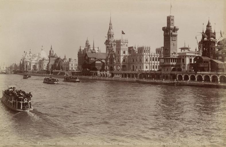 | Keywords: La Rue des nations, vue prise de la rive droite, Exposition Universelle 1900.jpg Foreign pavilions at the 1900 Paris World Fair The Rue des nations Foreign Nations street was located on the left bank of the Seine river between the Eiffel Tower and the Esplanade des Invalides It housed most of the foreign pavilions at the Fair some were also located in the Trocadéro gardens on the other side of the river and in front of the Eiffel Tower The buildings on that image are from right to left the Swedish pavilion the Monegasque pavilion the Spanish pavilion the German pavilion the Norvegian pavilion the Belgian pavilion the British pavilion the Hungarian pavilion the Austrian pavilion the American pavilion the Ottoman pavilion and the Italian pavilion 1900 photograph 12 x 18 5 cm Institution Brown University Library object history exhibition history credit line Published in N D Exposition universelle de 1900 album of 50 fine photographic views Paris 1900 accession number 1303846826250001 PD-old National pavilions of the Exposition Universelle 1900 Images of Paris from the Brown University Library Exposition universelle de 1900 album of 50 fine photographic views |
