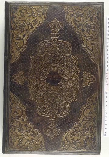 Keywords: La Sainte Bible - Upper cover (c108m9).jpg Style Centre and cornerpiece Mottoes Semis background of small tools; Caption Upper cover; Colour Brown; Edge Unspecified exhibition history Decorative Technique Tooled in gold; Cover Material Goatskin includes morocco turkey etc With doublures tooled in gold Macchi states; mid century Paris bound by Grolier's last binder H M Nixon Bookbindings from the Library of J Grolier LB 26 28 67-68 n 132 center and cornerpiece See Musée de Mariemont Prestige de la bibliothèque p 20 n 27; Universitätsbibliothek Leipzig Das Gewand des Buches p 88 n 62; Österreichische Nationalbibliothek Wien Europäische Einbandkunst p 82 n 132 Volume reproduced in J R Abbey Catalogue of valuable printed books and fine bindings 21-23 June 1965 p 51 lot 145 plate 16 The cornerpieces are reproduced on three Grolier's bindings; 1 G D Hobson Maioli Canevari and others pl 39; 2 J Toulet Les reliures p 537 Paris Bibliothèque nationale on Politien Venice Aldus 1498 shelfmark Imp Rés Z 547; 3 Bayerische Staatsbibliothek Thesaurus librorum p 258 n 114 on Hyeronymus Cardanus De rerum varietate Basel Heinrich Petri 1557 shelfmark 752 S 2° object history Text 1554; Lyons; Unspecified object type Cc-zero place of creation Binding France place of discovery For another binding by Grolier's Last Binder see The Wormsley Library London 1999 no32 British Library image http //www bl uk/catalogues/bookbindings/LargeImage aspx RecordId 020-000007062 ImageId ImageId 43136 Copyright BL La Sainte Bible Uploaded with GWToolset La Sainte Bible - Upper cover c108m9 http //www webarchive org uk/bldatasets/bindings/7653_4 jpg Bookbinding 16th-century bookbinding British Library Bookbindings |