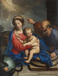 Keywords: La Sainte Famille avec une allégorie de la Rédemption Pierre Mignard.png Artwork Creator Pierre Mignard The Holy Family with symbols of the Redemption 1673 Oil on canvas cm 126 5 102 Musée des Beaux-Arts de Rouen Rouen France accession number object history credit line https //www bonhams com/auctions/11914/lot/167/ PD-old-100 Oil on canvas Pierre Mignard |
