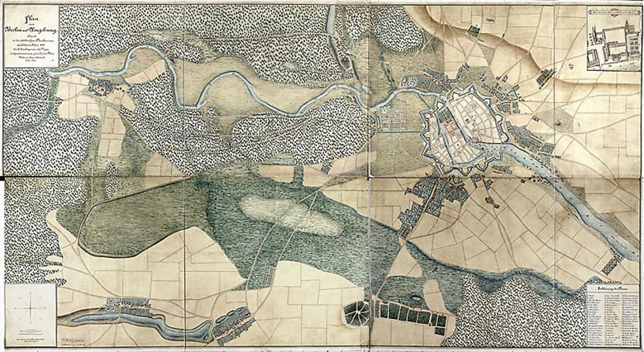 Keywords: La Vigne Plan von Berlin mit Umgebung 1685 (1890).jpg Zeichnung von Rieck und Beck Städt Plankammer Berlin Kopie nach dem Plan von La Vigne Das Original von La Vigne lagerte im Hohenzollern-Museum Schloss Monbijou und wurde im Zweiten Weltkrieg zerstört Links oben steht der Titel mit dem Zuzsatz Copirt in der städtischen Plankammer nach dem im Jahre 1685 durch den Ingenieur la Vigne aufgenommenen u gezeichneten Plane Berlin im Jahre 1890 durch Rieck u Beck Links unten eine Windrose eine Maßstabsleiste über 100 Rh R und die Bemerkung Das Original zu diesem Plane befindet sich im Hohenzollern-Museum Rechts oben das Schloss aus der Vogelperspektive mit der à bertitel Das kurfürstliche Schloß zu Kölln an der Spree Rechts unten eine Legende mit 16 Ziffern Auf dem Wasser sind zahlreiche Schiffe zur Verzierung eingezeichnet Der ursprüngliche Plan wurde 1683 nach Abschluss der Befestigungsarbeiten angefertigt und stellt auch geplante Erweiterungen der Befestigung durch gepunktete Linien dar La Vigne 1685 http //www landesarchiv-berlin de/lab-neu/pic/03/_07/01/phpslideshow php directory currentPic 1 landesarchiv-berlin de map date Berlin wikidata location Q64 5300 N de print date 1890 Landesarchiv Berlin accession number A 2003 Size cm 245 130 Kolorierter Holzschnitt other versions <gallery> File La Vigne Plan von Berlin mit Umgebung 1685 1890 jpg Colored low res copy 1890 File La Vigne Plan von Berlin mit Umgebung 1685 1890bw jpg Greyscale med res copy 1890 File La Vigne plan of Berlin Lietzow and Tiergarten jpg Cropped black-white from Gundlach 1905 </gallery> PD-old 1685 in Berlin Old maps of Berlin 1685 |