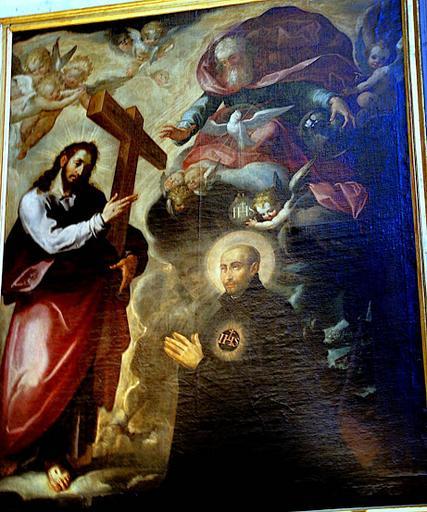 Keywords: La visión de San Ignacio de Loyola (Sacristía mayor de la catedral de Sevilla).jpg Esta obra que se conserva en la Sacristía mayor de la catedral de Sevilla España fue pintada hacia el año 1600 y es atribuida al pintor Alonso Vázquez c 1600 oil canvas Size cm Catedral de Santa María de la Sede de Sevilla Sacristia mayor de la catedral de Sevilla object history exhibition history credit line accession number http //leyendasdesevilla blogspot com es/2015/02/visitando-la-catedral-xxi-la-sacristia html PD-old-100 Paintings in the Sacristía mayor of Seville Cathedral Obras atribuidas a Alonso Vázquez en la catedral de Sevilla Uploaded with UploadWizard |