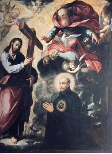 Keywords: La visión de San Ignacio de Loyola. (Sacristía mayor de la catedral de Sevilla).jpg Esta obra que se conserva en la Sacristía mayor de la catedral de Sevilla España fue pintada hacia el año 1600 y es atribuida al pintor Alonso Vázquez c 1600 oil canvas Size cm Catedral de Santa María de la Sede de Sevilla Sacristia mayor de la catedral de Sevilla object history exhibition history credit line accession number http //leyendasdesevilla blogspot com es/2015/02/visitando-la-catedral-xxi-la-sacristia html PD-old-100 Paintings in the Sacristía mayor of Seville Cathedral Obras atribuidas a Alonso Vázquez en la catedral de Sevilla Uploaded with UploadWizard |