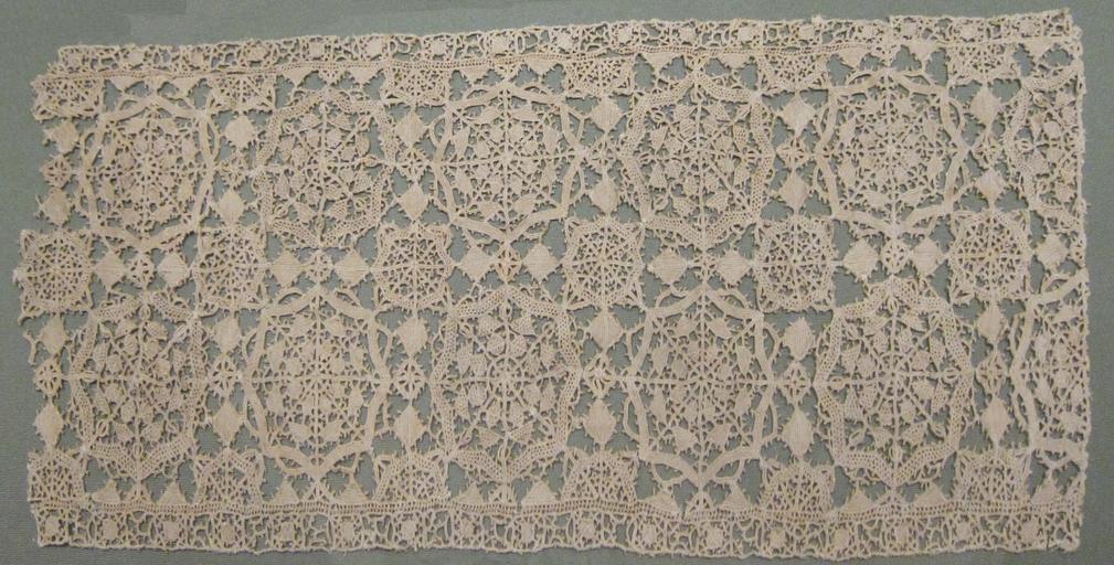 View Original: | Lace Panel, 16th century, Italy, Linen, needlepoint lace, punto in aria, Reticelli pattern, buttonhole stitch.JPG (2224x1128) | |||