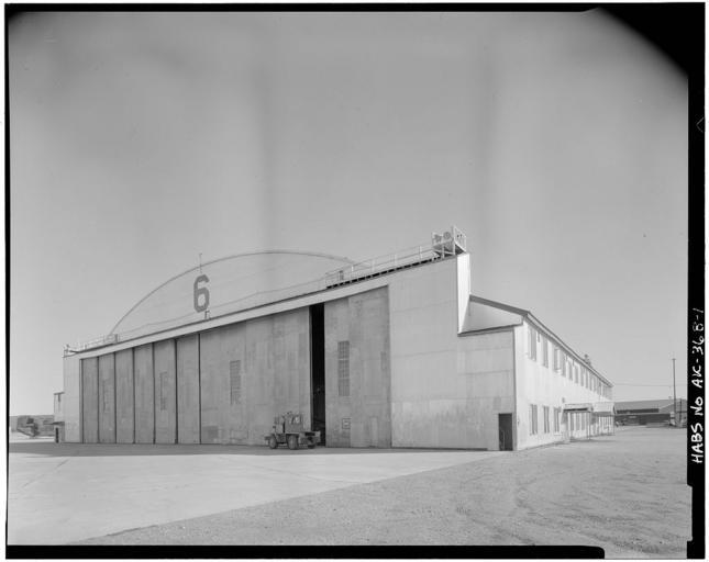 | Keywords: Ladd Field, Birchwood Hangar, NRHP 85002730.jpg en Title Ladd Field Birchwood Hangar Fort Wainwright Fairbanks Fairbanks North Star Borough AK Other Title Building No 2085 Creator s Historic American Buildings Survey creator Date Created/Published Documentation compiled after 1933 Medium Photo s 5 Measured Drawing s 2 Data Page s 2 Photo Caption Page s 1 Reproduction Number --- Rights Advisory No known restrictions on images made by the U S Government; images copied from other sources may be restricted http //www loc gov/rr/print/res/114_habs html Call Number HABS AK 6-FAIBA 1-B- Repository Library of Congress Prints and Photographs Division Washington D C 20540 USA http //hdl loc gov/loc pnp/pp print Notes Significance Named after first hangar constructed at Birchwood Airfield near Anchorage These large wood frame hangars were built at a number of Alaska bases but few survive Ladd Field was the site for the turnover of lend-lease aircraft to the Russians Survey number HABS AK-36-B Building/structure dates 1943 Initial Construction National Register of Historic Places NRIS Number 85002730 Subjects hangars Place Alaska -- Fairbanks North Star Borough -- Fairbanks Latitude/Longitude 64 83778 -147 71639 Collections Historic American Buildings Survey/Historic American Engineering Record/Historic American Landscapes Survey Part of Historic American Buildings Survey Library of Congress Bookmark This Record http //www loc gov/pictures/item/ak0243/ 2011-12-26 LOC http //lcweb2 loc gov/pnp/habshaer/ak/ak0200/ak0243/photos/001333pv jpg HABS PD-USGov Uploaded with UploadWizard Hangars Ladd Army Airfield |