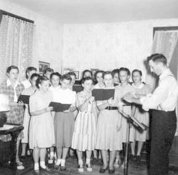 Keywords: mennonite community mennonite church choir choral music mennonitecommunitymennonitechurchchoirchoralmusic kokomo indiana dorwin myers dorwinmyers women singing people groupshot blackandwhite monochrome black and white Caption: September 7, 1948. Kokomo, Indiana. Ladies' Chorus under direction of Dorwin Myers. Collection Citation: Mennonite Community Photograph Collection, 1947-1953, Service. HM4-134 Box 1 Photo 092-12. Mennonite Church USA Archives - Goshen. Goshen, Indiana. Caption: September 7, 1948. Kokomo, Indiana. Ladies' Chorus under direction of Dorwin Myers. Collection Citation: Mennonite Community Photograph Collection, 1947-1953, Service. HM4-134 Box 1 Photo 092-12. Mennonite Church USA Archives - Goshen. Goshen, Indiana. |
