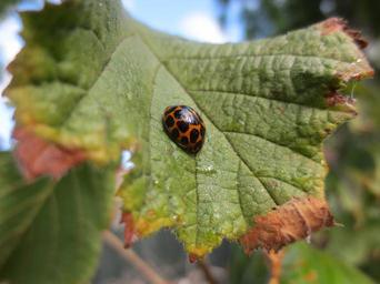 Keywords: ladybird ladybug beetle insect bug small red black garden arthropod nature summer hazel