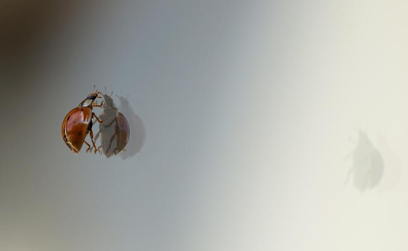 Keywords: ladybug beetle reflection macro climb mirrored glass close