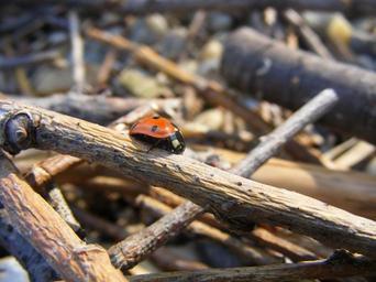 Keywords: ladybug wood branch