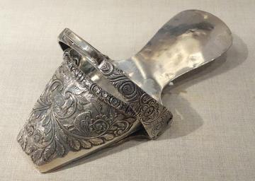 Keywords: Lady's stirrup, maker unknown, Peru, c. 1850, silver, brass - De Young Museum - DSC00997.JPG en Exhibit in the De Young Museum San Francisco California USA This artwork is in the public domain because the artist died more than 70 years ago Photography was permitted in the museum without restriction 2013-11-05 16 31 48 own Daderot other versions cc-zero Uploaded with UploadWizard Metalwork in the De Young Museum Metalwork of Peru Stirrups |