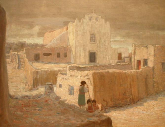 Keywords: 'Laguna Mission' by Carlos Vierra, oil on canvas.jpg en Laguna Mission by Carlos Vierra oil on canvas The Owings Gallery Santa Fe NM Carlos Vierra PD-old-auto 1937 Carlos Vierra Laguna New Mexico