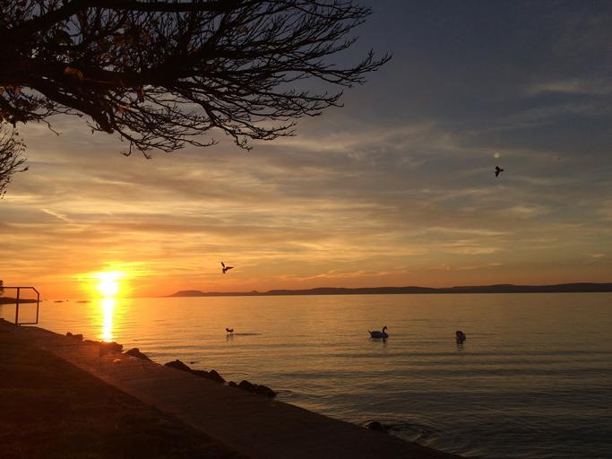 Keywords: lake balaton sunset wood swan mallards color cozy light in the evening mystic nightfall sky