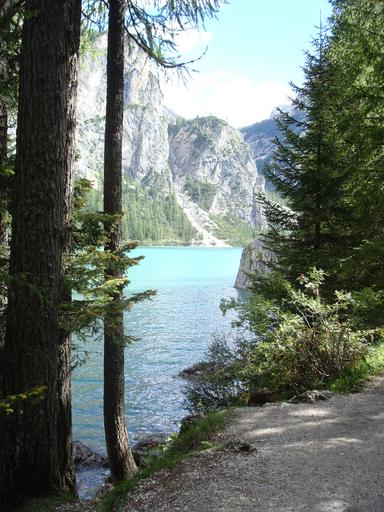 Keywords: lake bank idyll mountain landscape hill tree waters away turquoise nature water landscape rest mood atmospheric relax mountain relaxation recovery holiday