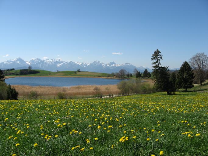 Keywords: lake forggensee sky blue foothills of the panorama mountains allgäu outlook füssen dandelion