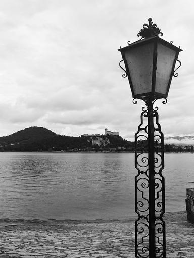 Keywords: lake lake arona lamppost mountain water nature sky landscape clouds italy mountains stones sky water