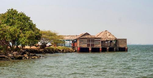 Keywords: lake maracaibo venezuela restaurant building water shoreline sky clouds trees nature outside panorama