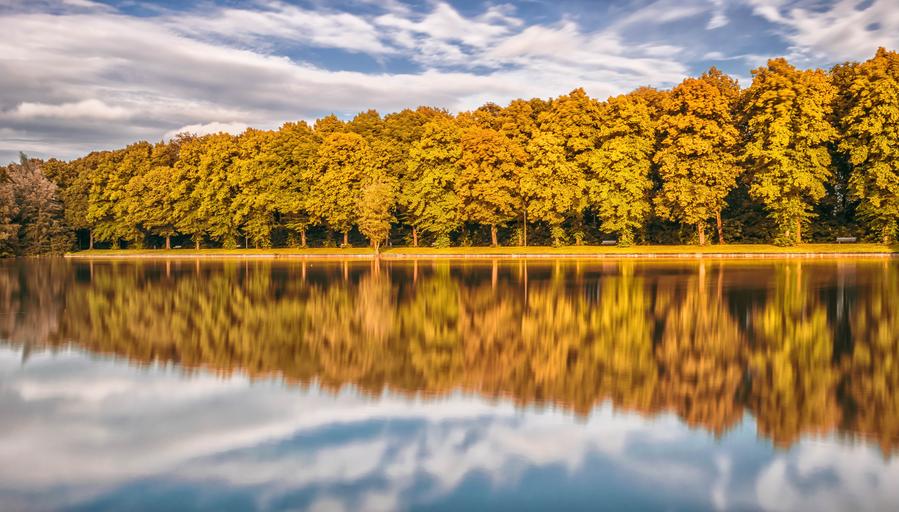 Keywords: lake mirroring forest summer park sky color warm water reflection rest nature